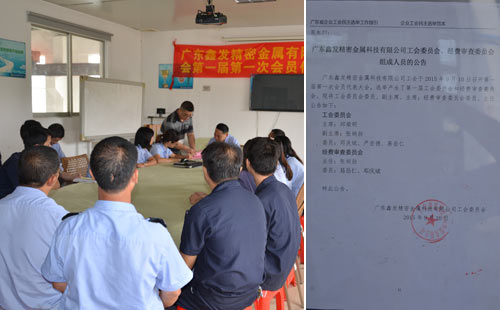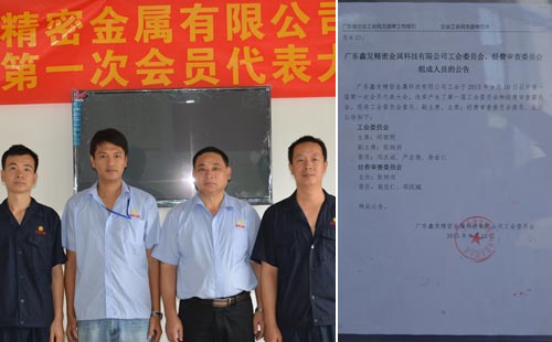 9月10日鑫發金屬公示了工會第一屆委員會、經費審查委員會的候選人的名單。9月14號召開廣東鑫發精密金屬科技有限公司工會第一屆第一次會員代表大會,會議選舉產生第一屆工會委員會和經費審查委員會的主席、副主席、委員和主任。